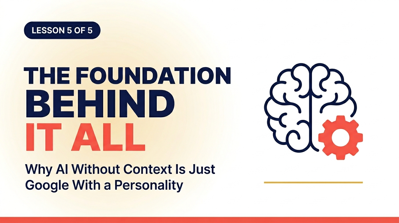 Everything in this course works. But only if you teach your AI about your business first. Most people never do that. They copy prompts, get generic output, and wonder why nothing changes. The agents and founders who get real transformation from AI build the foundation first. Then the tools start working harder than they do.